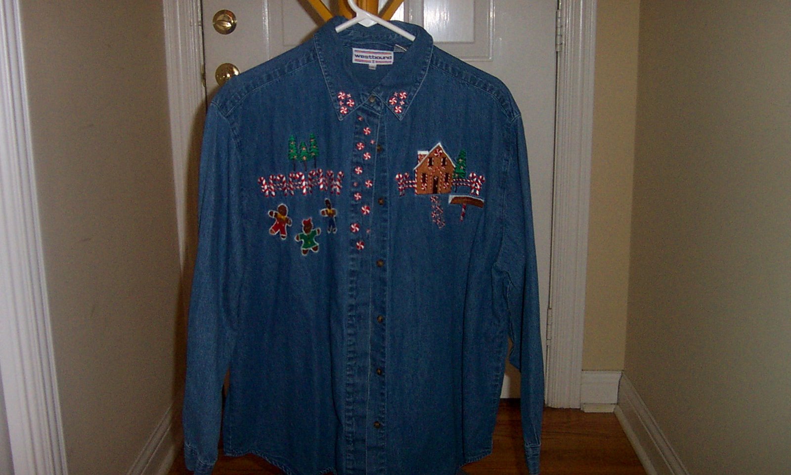 So--when I did a major closet cleaning recently I found leftovers hiding in the back. Yes, I really wore these things! Sorry, but you will miss seeing the snowman sweater with the strategically placed tassel on his hat! What was I thinking! Anyway--he went to used clothing heaven (Good*will) several years ago!